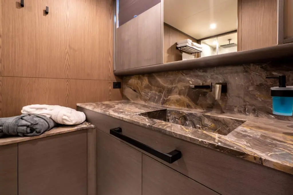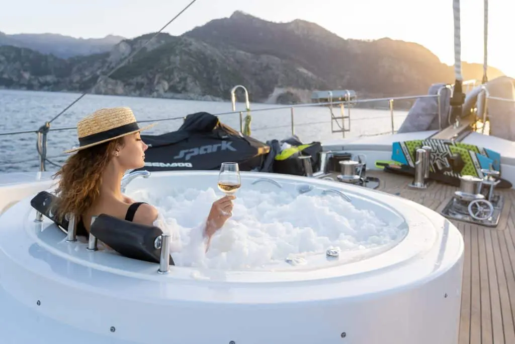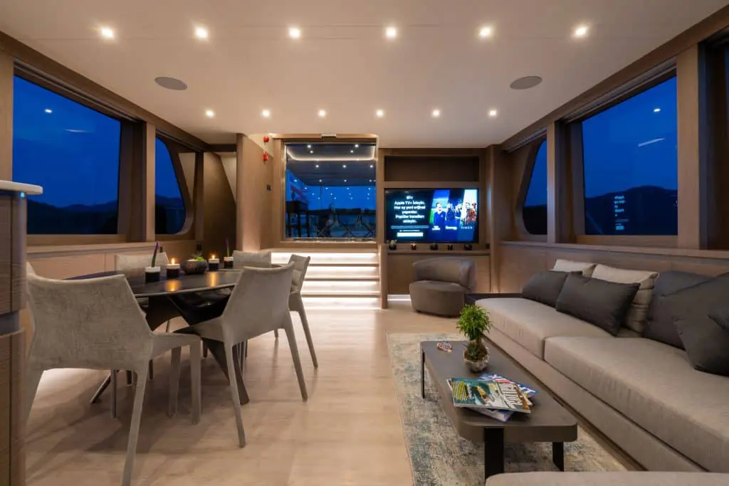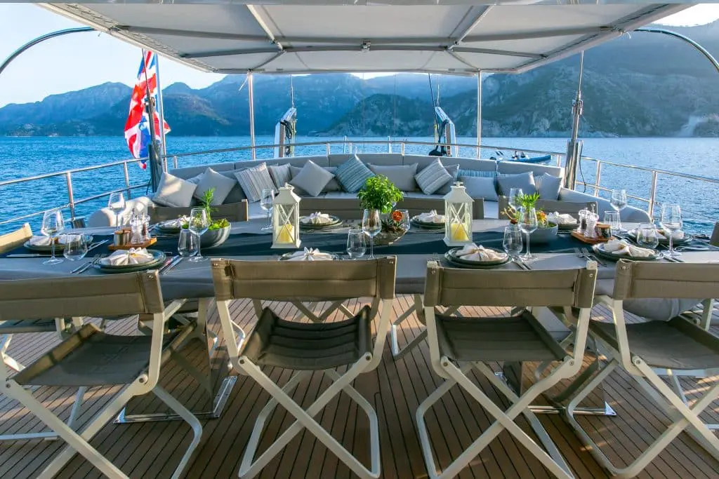Il caicco GOOD LIFE è stato costruito nel 2019 e sottoposto a un refit nel 2021. Precedentemente chiamato PURA VIDA, questo lussuoso caicco ora accoglie gli ospiti con il suo nuovo nome. GOOD LIFE barca di lusso, il cui porto principale è l'isola di Rodi in Grecia, è un imbarcazione battente bandiera greca. GOOD LIFE barca di lusso è lunga 39 metri e larga 8 metri. Con due motori principali che producono ciascuno 610 cavalli di potenza ha una velocità di crociera media di 10 nodi. Dotato di due generatori che producono ciascuno 27 kW di potenza, GOOD LIFE offre agli ospiti aria condizionata 24 ore su 24 durante il periodo di noleggio. Il ponte di poppa è piuttosto ampio. Questa zona offre agli ospiti uno spazio splendido per rilassarsi e prendere il sole. Al centro del ponte c'è un tavolo da pranzo che può ospitare comodamente dieci persone. Le ampie finestre del salone conferiscono a questa zona un senso di spaziosità e luminosità. Anche dall'interno è possibile godere di magnifiche viste panoramiche durante tutto il giorno. Entrando nel salone, si trova un tavolo da pranzo di fronte, mentre sulla sinistra è situata una zona salotto molto confortevole. Con il suo design classico ed elegante, la barca GOOD LIFE offre agli ospiti un ambiente accogliente. Il ponte anteriore offre uno spazio abitativo straordinario. Gli ospiti che lo desiderano possono prendere il sole sui lettini durante tutto il giorno. Comodi divani proprio di fronte ai lettini offrono uno spazio ideale per rilassarsi e leggere. La caratteristica più accattivante del ponte anteriore è, naturalmente, la vasca idromassaggio che si trova qui. Se il tempo lo permette, gli ospiti possono godersi la vasca idromassaggio sia di giorno che di sera. GOOD LIFE caicco può ospitare fino a 10 persone in 5 cabine. 1 cabina armatoriale, 2 cabine doppie e 2 cabine VIP, tutte caratterizzate da un design classico. Ogni cabina è dotata di bagno, WC e aria condizionata. La lounge è dotata di televisione, impianto audio e sistema multimediale. Gli ospiti possono inoltre usufruire del servizio Wi-Fi gratuito a bordo della GOOD LIFE. GOOD LIFE offre agli ospiti una varietà di sport acquatici tra cui vi sono snorkeling, pinne, paddle board, sci nautico, sea bob, ringo e 2 moto d'acqua. Per esplorare le isole greche a bordo del caicco GOOD LIFE e per i dettagli dell'itinerario, non esitate a contattarci.